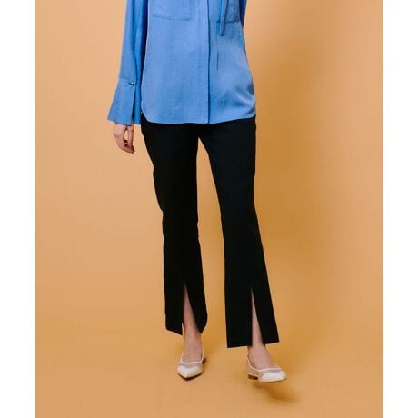 脚が綺麗にみえるようシルエットにこだわったフロントスリットパンツ。