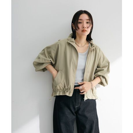 撥水加工を施したナイロン混素材のデザインブルゾン。丸みのあるコンパクトなコクーンフォルムにスタンドカラーがフェミニンな印象です。首元や裾にはトレンドのドロストコードをプラス。絞りアレンジで印象を変え、スタイリングの幅を広げてくれます。インナー次第でロングシーズン活躍してくれるアイテムです。透け感[ややあり]