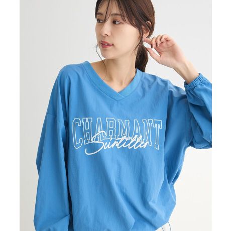 スポーティーカジュアルなナイロン素材で仕立てたプルオーバー。Vネックに肩のラインを落としたゆったりシルエットがこなれ感ある一枚です。裾にはドロストゴムでバルーンフォルムにアレンジが可能。フロントのロゴプリントがライトな印象を加え、スタイリッシュに着こなしていただけます。デニム合わせはもちろん、スカートとも好相性なおすすめアイテム。透け感[ややあり]