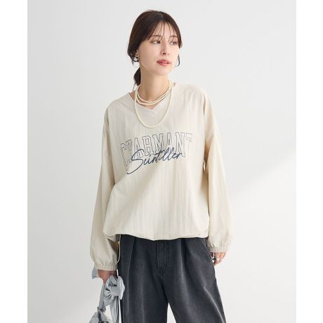 スポーティーカジュアルなナイロン素材で仕立てたプルオーバー。Vネックに肩のラインを落としたゆったりシルエットがこなれ感ある一枚です。裾にはドロストゴムでバルーンフォルムにアレンジが可能。フロントのロゴプリントがライトな印象を加え、スタイリッシュに着こなしていただけます。デニム合わせはもちろん、スカートとも好相性なおすすめアイテム。透け感[ややあり]