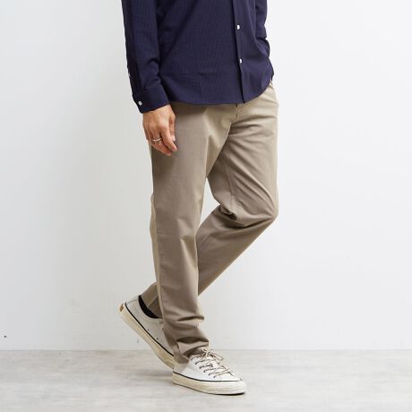 ヒップ、わたり部分にややゆとりを持たせ裾に向けてテーパードを利かせたリラックステーパードシルエットです。