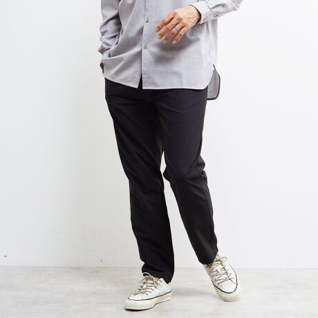 ヒップ、わたり部分にややゆとりを持たせ裾に向けてテーパードを利かせたリラックステーパードシルエットです。