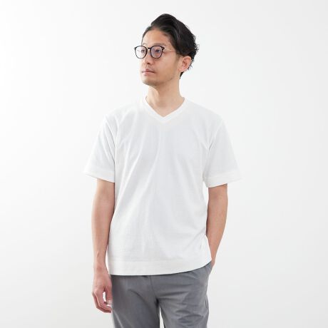 浅めに設定したVネックなので、品の良さがありながらも艶っぽく着用する事が出来ます。