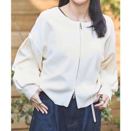 ジップの開け方と、前後2wayで着こなしの幅が広がるダブルジップカーディガン。