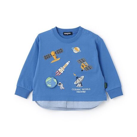H3ロケットや、小惑星探査機「はやぶさ2」、「だいち4号」のモチーフ刺しゅうをちりばめた長袖Tシャツです。