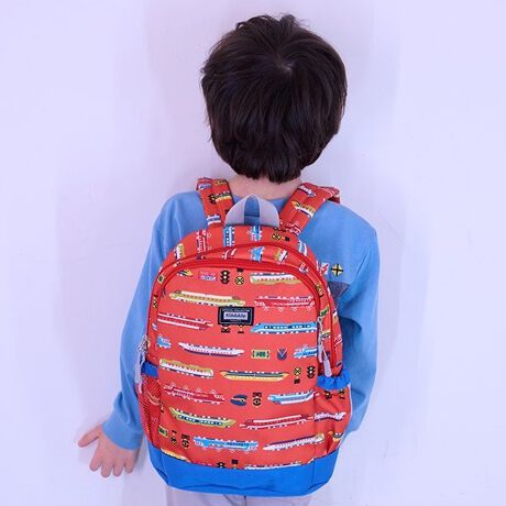 電車の総柄デザインがインパクト大のリュックです。