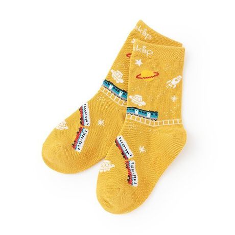 宇宙を走る電車が個性的で遊び心あるソックスです。
