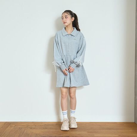 フロントジップとサイドリボンがポイントのワンピースです。