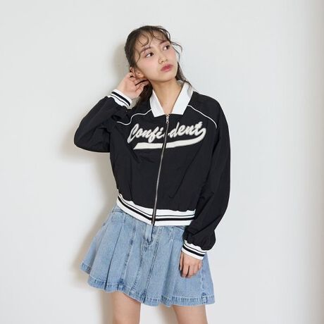 ロゴアップリケを大胆にあしらったスタジャンです。