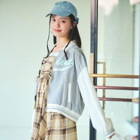 ロゴアップリケを大胆にあしらったスタジャンです。
