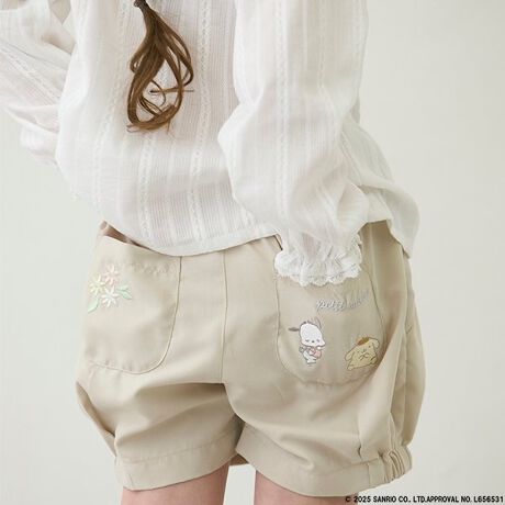 サンリオキャラクターズの刺しゅうや総柄が可愛らしいショートパンツです。