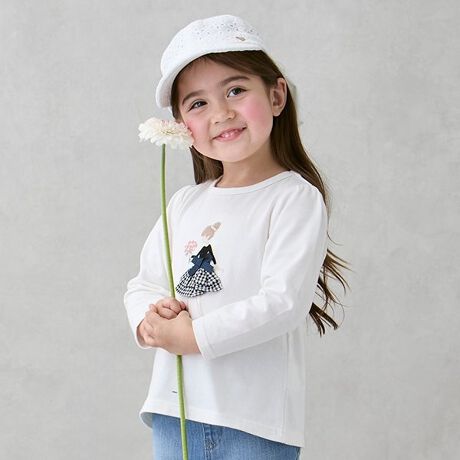 立体的な女の子のアップリケがおしゃれな長袖Tシャツです。
