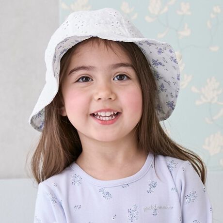 リボンモチーフと花柄の両方を楽しめるリバーシブルハットです。
