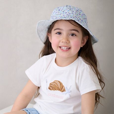 リボンモチーフと花柄の両方を楽しめるリバーシブルハットです。