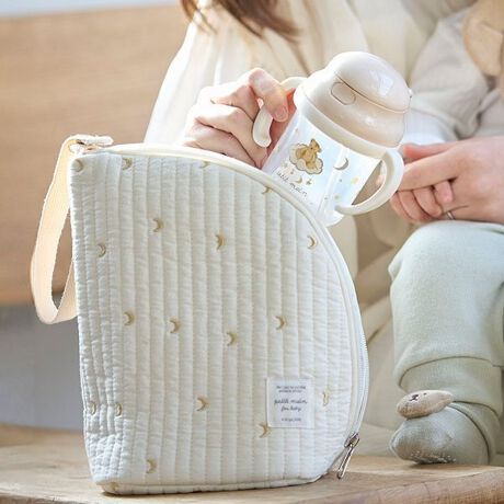 ポーチ内側には哺乳瓶を差し込み、固定できる仕切りが付いた仕様です。