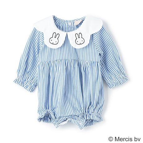 ミッフィーの刺しゅうをデザインした衿つきロンパースです。