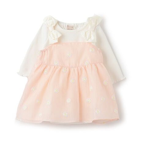 花の刺しゅうが可愛らしいキャミワンピースがセットになったロンパースです。