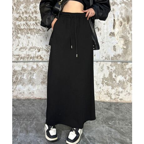 シンプルでありながら、調節可能な紐でウエストのフィット感を調整できます。落ち感のあるデザインで、スタイリッシュかつエレガントな印象を与えます。