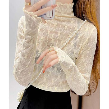 シースルーレースハイネックトップス