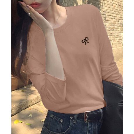 リボン刺繍が施されたシンプルな長袖カットソー。柔らかな素材感と程よいフィット感が特徴で、どんなコーディネートにも合わせやすいアイテムです。カジュアルなデザインながらリボン刺繍がアクセントとなり、シンプルながら華やかさをプラスしています。