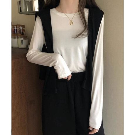 シンプル無地長袖カットソー