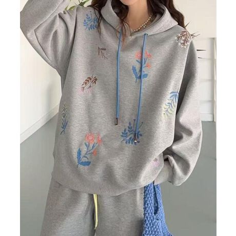 シンプルでありながら、広めのシルエットで草花の刺繍が特徴的で着心地抜群、様々なコーディネートに合わせやすく、カジュアルスタイルにぴったりです。カラーバリエーションも豊富で、どんな気分にも合わせられます。