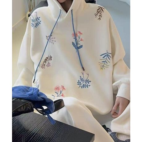シンプルでありながら、広めのシルエットで草花の刺繍が特徴的で着心地抜群、様々なコーディネートに合わせやすく、カジュアルスタイルにぴったりです。カラーバリエーションも豊富で、どんな気分にも合わせられます。