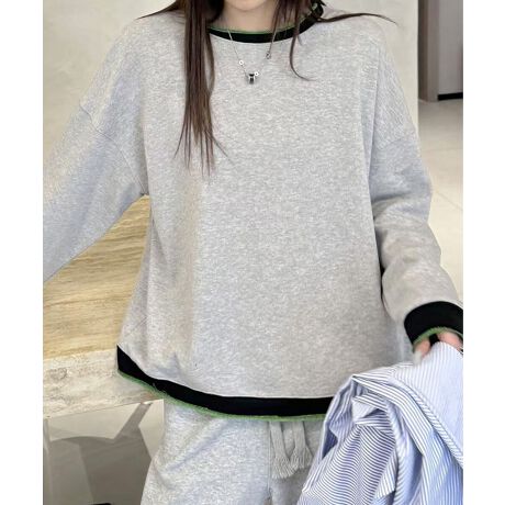 シンプルでありながら、スタイルに個性を与えるロングスリーブトップス。襟と裾の配色がカジュアルでありながらもスタイリッシュな印象を与えます。ラフでリラックスしたシルエットが特徴で、日常のコーディネートにぴったりです。