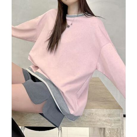 シンプルでありながら、スタイルに個性を与えるロングスリーブトップス。襟と裾の配色がカジュアルでありながらもスタイリッシュな印象を与えます。ラフでリラックスしたシルエットが特徴で、日常のコーディネートにぴったりです。