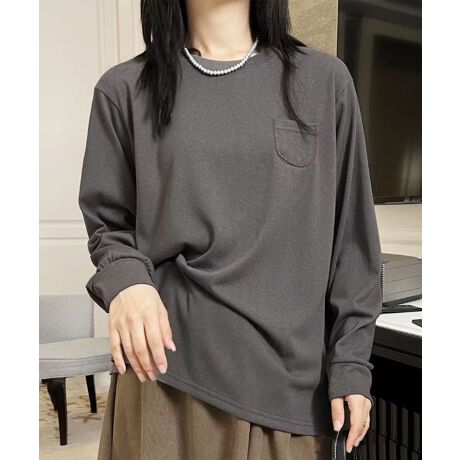 シンプルでありながら胸元にポケットが施されたデザインが特徴のロングスリーブTシャツ。ポケットのデザインがアクセントとなり、シンプルさの中にも少し遊び心を加えたアイテムです。ゆったりとしたシルエットで快適。