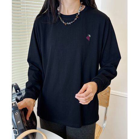 シンプルなデザインに、小さなハート刺繍がアクセントとなったロングスリーブTシャツ。落ち着いたカラー展開で、シーズンレスに着回し可能なアイテムです。ゆったりとしたシルエットで着心地抜群。