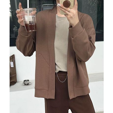 フロントボタンのないトッパーカーディガン。シンプルでどんなスタイルにも合わせやすい万能アイテムです。ゆったりとしたシルエットで、リラックス感とエレガンスがあります。両サイドにポケット付きで実用性も抜群です。