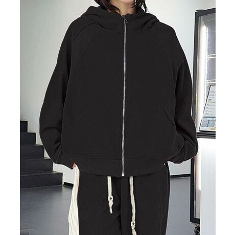 ジップアップパーカー。ハイウエストのデザインでスタイルアップ。シンプルでカジュアルスタイルにぴったり。楽におしゃれが決まるアイテムです。