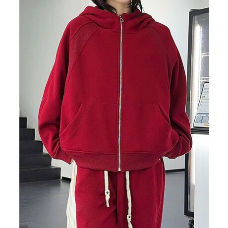 ジップアップパーカー。ハイウエストのデザインでスタイルアップ。シンプルでカジュアルスタイルにぴったり。楽におしゃれが決まるアイテムです。