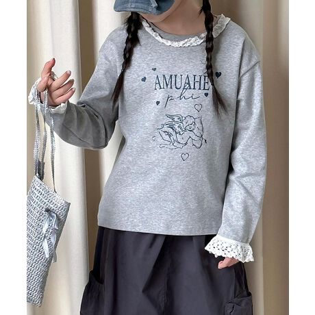 【aimoha-KIDS-】レース襟付きプリントキッズスウェット