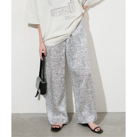 NYで活躍するアーティストGAKU氏とのコラボアイテム。GAKU氏のドローイングをシルクサテン素材にプリントしたパンツ。シルクならではの、非常にしなやかで手触りのいい、上品な光沢のある素材。さらりと穿けるシンプルなウエストゴムデザインのワイドパンツ。GAKU氏のモードなドローイングを女性らしく表現した一枚です。