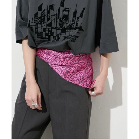NYで活躍するアーティストGAKU氏とのコラボアイテム。GAKU氏のドローイングをシルクサテン素材にプリントしたスカーフ。シルクならではの、非常にしなやかで手触りのいい、上品な光沢のある素材。頭や首元に巻いてポイントづかいに。