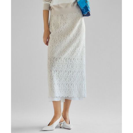 甘さ控えめの繊細なレースで、上品な印象を与えるIラインスカート