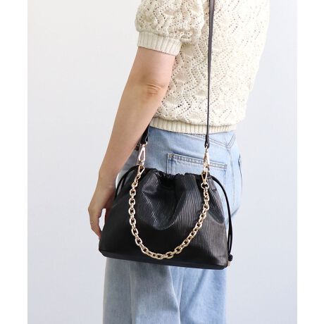 【2way/デイリー/軽量】チェーンハンドル巾着ショルダーバッグ