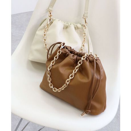 【2way/デイリー/軽量】チェーンハンドル巾着ショルダーバッグ