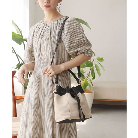 マルイウェブチャネル   /   バッグ   /   ショルダーバッグ・メッセンジャーバッグ   /   【2way/デイリー/ミディアムサイズ】LOTUS/キャンバスリネン2way巾着ショルダーバッグ