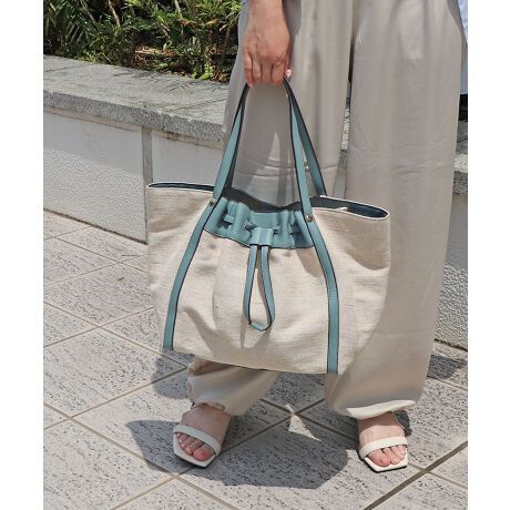 マルイウェブチャネル   /   バッグ   /   トートバッグ   /   【A4/デイリー/軽量】LOTUS/キャンバスリネン巾着風トートバッグ