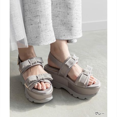 さりげなくフリンジが施されたリボンがポイントのスポーツサンダル。