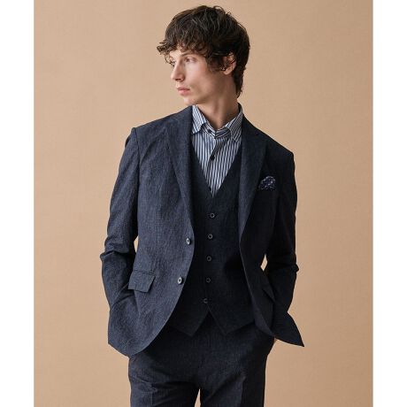 ■デザイン同素材でベスト・パンツもご用意しており、セットアップで着ていただくことも可能。イージーケアでシワになりにくく畳んでも問題ありません。カジュアルにTシャツ+デニム合わせもできるので、普段使いにもおすすめです。