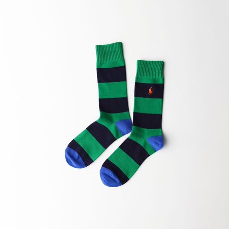 ポロラルフローレン オーガニックコットン混 クラシックラグビーボーダー クルー丈 メンズ ソックス