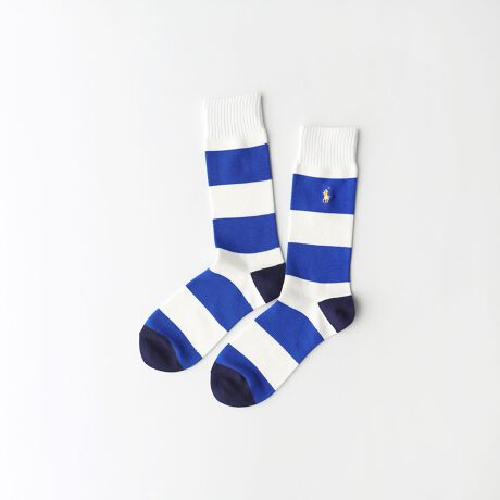 ポロラルフローレン オーガニックコットン混 クラシックラグビーボーダー クルー丈 メンズ ソックス