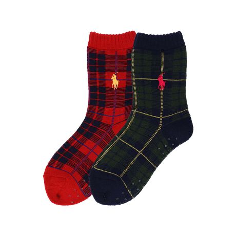POLO RALPH LAUREN タータンチェック 滑り止め付 メンズ クルー丈 ルームソックス