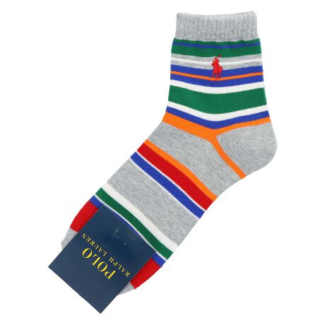 ポロラルフローレン オーガニックコットン混 マルチボーダー ショート丈ソックス メンズ