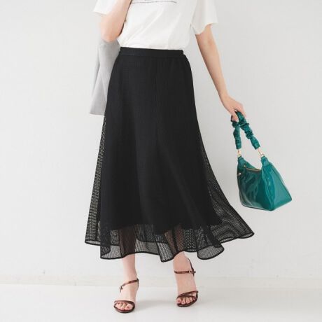 トレンドのメッシュ素材のフェミニンなフレアスカート。