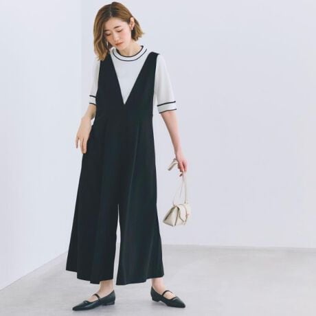 カジュアルな印象のサロペットを大人の女性でも着こなし易いよう、